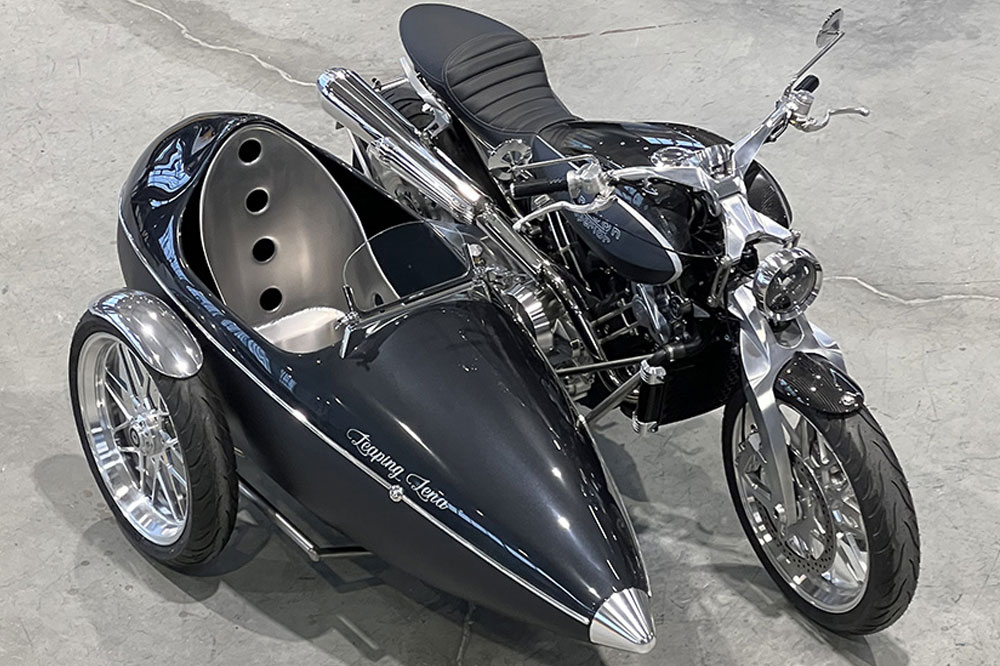 サイドカー ブラフ シューペリア ロレンス リーピング レナ唯一無二の芸術品とも称されるサイドカー「リーピング レナ」は、「ロレンス」モデルをベースに、フランス南西部に住む情熱的な愛好家のために特別に誂えられたカスタム車輌です。その流麗なシルエットは、葉巻型のエアロダイナミクスを備え、まるで空を優雅に漂う飛行船ツェッペリンを思わせます。ブラフ シューペリア社のディレクター、アルベルト カスターニ…
