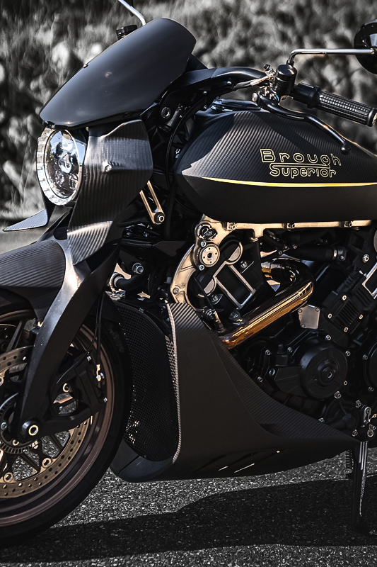 この車輌において、技術とはただ機能を達成するための手段ではありません。それは、意志を物質へと翻訳するための、密やかな言語のようなもの。ダガーの機構には、音もなく整列した思想の粒子が潜んでおり、そこに宿るのは数値や性能という名の数字ではなく、形の中に沈殿する美意識です。エンジンは、水冷 88度 V型2気筒 997cc。この数列が示すのは、機械としての構成要素であると同時に、力を精緻に束ねるための秩序そのもの。出力は102bhp、トルクは87Nm。けれどもこの車輌は、それらの数値を誇示するようなことは決してありません。あくまでも、それらは沈黙の中に内包され、必要なときにだけ静かに目を覚まします。まるで無言の刀が、抜かれることなく力を放つように。シリンダーやクランクケース、あらゆる部位は、美しく精密に削り出され、ひとつの剛体として美しく整い、チタン合金のフレームは、構造体としての軽さだけでなく、その表面が放つ冷たい硬質の光までも計算され尽くされ、素材そのものが精神を背負うために存在しているかのような佇まいをみせます。フロントサスペンションには、Fior式ダブルウィッシュボーンが据えられます。アルミニウムのアームが空間を縫うように伸び、チタニウムのリンクとともに前輪を包み込むこの構造には、圧倒的な秩序と、機械にしか成し得ない静謐があります。ここにもまた、衝撃や荷重を処理するという工学的理由を超えて、整然と動くものへの信頼、そしてそれを支える知恵と祈りが見てとれます。リアセクションもまた、エンジンに直接結ばれるようにマウントされた削り出しのアームと、リンク式モノショックによって構成。上下の動きを吸収するための機構が、深く息をすることに似た動作に感じられるのは、この車輌全体に通底する品格と同期しているからでしょう。制動系には、Beringer製のキャリパーと320mmのディスク。触れる必要があるときだけ明確に応じ、余計な力を要さず、停止する。それはまるで、完璧に調律された楽器が、僅かな指先の動きで音を返すような応答のように反応します。前後17インチの削り出しアルミホイールは、視覚に訴える造形を伴いながら、実際の運動特性においてもこの車輌の精神を支えるために存在しています。ハンドリングは俊敏でありながら騒がしくなく、軽快でありながら落ち着いている。単なるスポーツ性ではなく精密という名の沈黙が、ライダーの感覚の延長として機能しているのです。ダガーの技術は、語るべき性能の羅列ではありません。あらゆる設計の奥にある、「なぜこうあるべきか」という問いに対する、ひとつの答えの積層。ライドするという行為は、その精密さと共振することであり、ダガーと共にあるとは、その静けさの中へ入り込むことでもあります。技術とは構造であり、構造とは意志であり、意志とは姿勢。この車輌が纏う精密は、限界まで研ぎ澄まされたあたたかさでもあり、機械と精神が溶け合っていることに、ふと気づく瞬間があります。それが、ブラフシューペリアダガーに宿る本当の性能なのかもしれません。