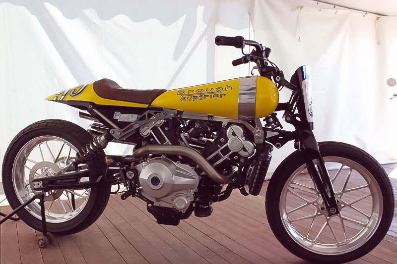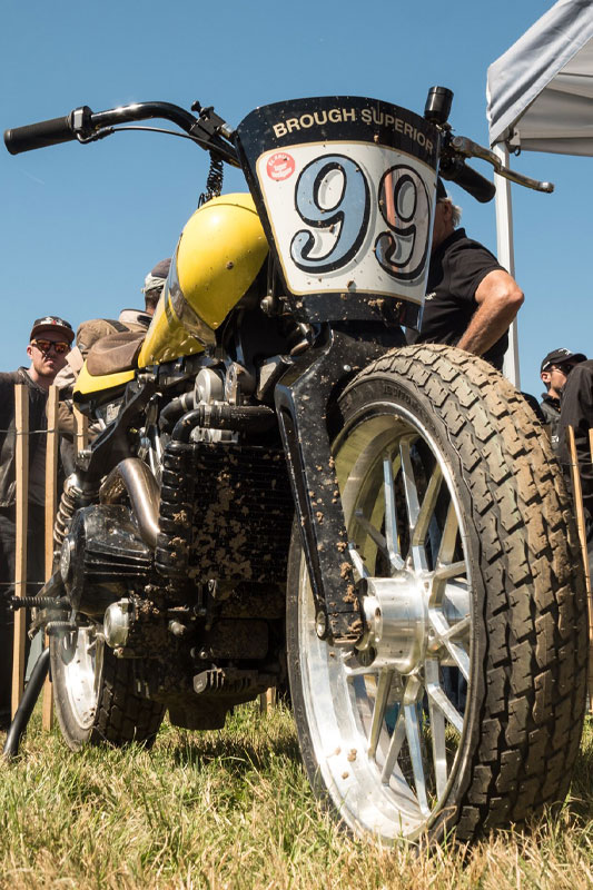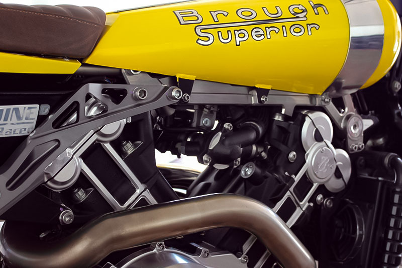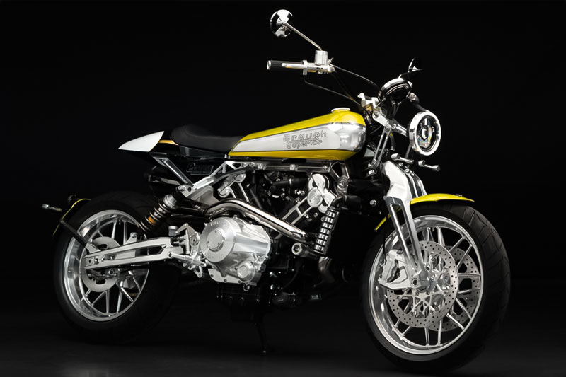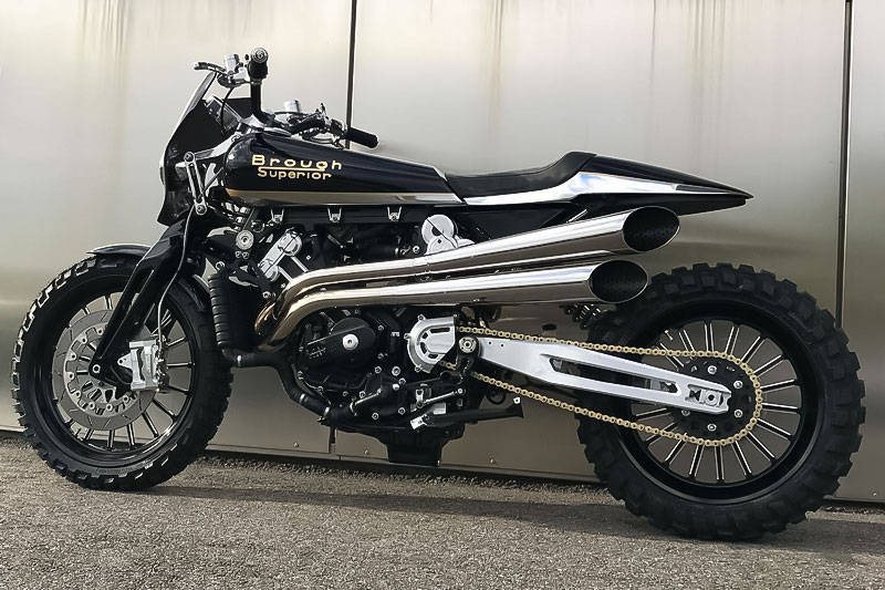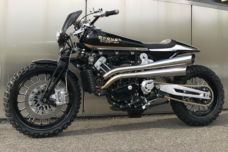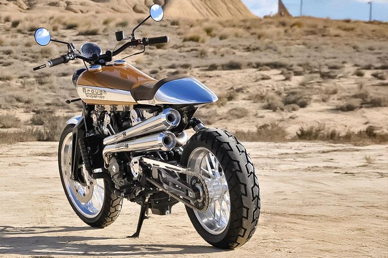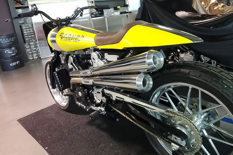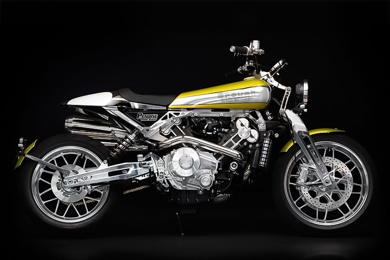 ウェールズ南西部の海岸に広がるペンディン サンド(Pendine Sands)は、干潮時におよそ11キロメートルもの平坦で硬質な浜が現れ、自然が用意した直線のテストトラックとして知られています。1920年代、この地はスピード記録の聖地としてその名を轟かせ、四輪ではマルコム キャンベルが150mphの壁を破り、パリー トーマスが命を懸けて時速270kmを超える挑戦に臨みました。一方、モーターサイクルの世界でもペンディン サンドは重要な舞台となりました。1922年からは「ウェルシュTT(Welsh Tourist Trophy)」が開催され、モーターサイクルもまたこの地で砂を蹴り、風を裂きました。1927年には、ジョージ ブラフが自身のS.S.100で130.6mph(約210km/h)を記録し、当時のソロモーターサイクルとして世界最速の記録を樹立しました。その後も、ペンディン サンドは時代の最先端を走る者たちにとって特別な場所であり続けます。2018年にはゼフ アイゼンバーグがハヤブサを改造したマシンで時速320kmを突破し、モーターサイクルによる記録を更新しています。そんな場所に、ふたたびブラフシューペリアの名が響きます。ブランドがその精神と遺伝子を受け継ぎ現代に放つマシン、それがペンディン サンドレーサー。歴史への敬意と革新への情熱とを一身に背負い、時空を越えて甦ったこのモデルは、ただ速さを追い求めるだけでなく、挑戦することの尊さまでも体現。外観には、砂の記憶を纏ったような力強さと洗練が共存。高く跳ね上がったエキゾースト、幅広で剛性あるハンドルバー、そして精巧なアルミニウム製のタンクとシートユニット。光が触れるたび、シートユニットの造形が繊細な陰影をまとい、静謐な緊張感を生み出します。搭載されるのは、997cc 水冷DOHC 88度V型2気筒エンジン。最高出力102馬力、最大トルク87Nmを発揮し、未舗装の路面でも力強く、粘りのあるトルクを供給します。フレームには軽量かつ高剛性なチタン合金を採用し、Fior式ダブルウィッシュボーン フロントサスペンションが操縦安定性と俊敏な応答を両立します。ブレーキには、バルリンガー製のディスクを前後に装備。フロント19インチ、リア17インチのCNC削り出しホイールとともに、路面との対話を深める精密な足まわりを実現。フランス トゥールーズの工房にて、一台一台が熟練職人の手によってビスポークで仕立てられます。このモーターサイクルは歴史と革新が融合した芸術作品。所有する者の感性と哲学が反映され、走ることでその真価を発揮します。