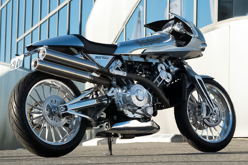 ── ボンネビル ソルトフラッツでの挑戦に捧ぐ、選ばれし存在。クラシカルな名車S.S.100の血統を受け継ぎながら、そのすべてを速さのために再構築したソルト レーサー。このモデルは、風と対峙するために設計された、純然たるスピードマシンです。舞台はアメリカ ユタ州の聖域、ボンネビル ソルトフラッツ。時速300kmを超える極限領域では、空気すらも立ちはだかる障壁。ブラフシューペリアは、この過酷な大地にその名を刻むべく、あらゆる無駄を削ぎ落とし、空力性能と軽量美を極限まで研ぎ澄ませたソルト レーサーを解き放ちました。その構造には、現代技術の粋が惜しみなく注がれています。チタンやアルミニウムを巧みに用いた軽量モノコックフレーム、風を切るための流麗なボディライン、そして独自のFior式サスペンション。すべてがボンネビルにおけるスピードアタックに最適化され、速さのために研ぎ澄まされた造形美と機能美が、極限の地で真価を発揮します。速さという美学に命を吹き込まれた、哲学の具現。白き塩原を切り裂くその姿は、まさに究極のレーシング ピュアネス。走ることで語る。── それは、栄光と革新の記憶を宿した者にしか許されぬ特権。ソルト レーサー、速度を詩とする者たちへと捧げる、未来へと継がれるスピードの精神を宿す現代の血統です。