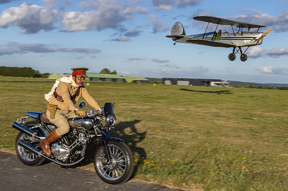 この日、空と陸で再び交差した二つの魂 ── 飛行機とモーターサイクル。それは、単なる再現にとどまらず、ロレンスという存在の深層に触れ、彼の見た夢を100年の時を超えて今に伝える、壮麗なるオマージュとなりました。